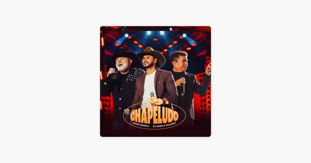 Chapeludo▶Ouvir TrechoClique para reproduzir uma préviaArtista: Nando Moreno e Rio Negro & SolimoesÁlbum: Chapeludo (ao vivo)Ano: 2025Duração: 3:09